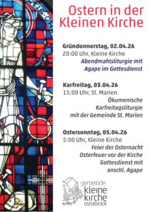 05.04.2026, 05:00 Uhr – Ostergottesdienst in der Kleinen Kirche anschließend Osteragape in der Kleinen Kirche